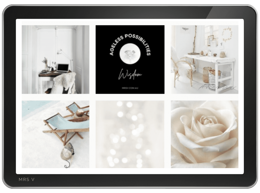 Nothing makes me more connected to the digital world and the current marketing and branding solutions than running my purpose-driven brand – MRS V® & AGERICH®. Both brands offers age-positive solutions via my alchemy sessions, workshops, products, magazine, podcast, and soon to open a studio membership with a courses platform. Nothing helps you understand a client’s needs more than when you do it yourself.